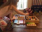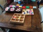we have worked extensively on colors. Different sorts of Montessori style color boards with matching colors paired with fine motor skills like pegs in holes. We have also worked with the color tiles.