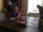 Life cycle of the chicken and the frog (which we have studied in the past). Maggie practices writing in the numbers of the steps.