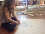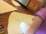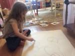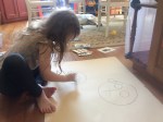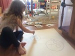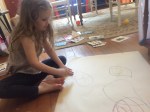 Lily said she messed up. She was drawing Map Man & decided she would start over. So we ended up with a Mat Man with 2 heads. But she did a great job following through with each step without prompting. Lily is having a difficult time measuring the whole space of an object. As with letters & writing although they combine different things it is hard for her to decide where to start an object. Or if she is considering the object as a whole entity on the paper. She’s measuring it in pieces right now although leaving more room for the body now.