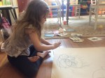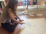 This occasion we drew Map Man. Again, because I know I’ve mentioned it before, Map Man is s character built up of the elements it takes to create most capital letters. Big lines, little lines, big curves, little curves. He’s the key to getting children to memorize the pieces that match the word so handwriting or active can be verbally dictated while the child is writing with less hand over hand assistance. He is definitely the girls favorite part of HWT. We usually build him with the wooden pieces but instead today we drew him. He is drawn to music that playfully tells how to draw him in steps, head, eyes, nose, mouth, ears, etc. We press pause on each part to take our time drawing the picture. Maggie is getting very creative with her drawings. Adding trims to dresses & better symmetry to her hearts. Lily is drawing the inner body parts of the body and adding hair as a creative step to her drawings. She draws them by herself now. 🙂 In a picture above you see she has combined the building parts to her drawing where we then traced the square the create Mat Mans body.