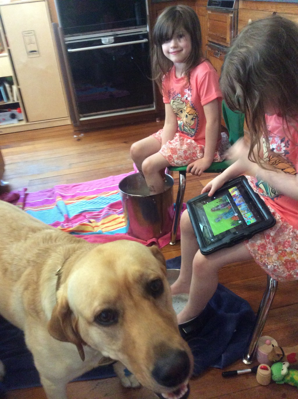 The girls and I took some time to soak our feet. After soaking the girls had their nails and toes painted. Maggie & Liky picked their own colors. I was very impressed with Lily’s ability to sit still in a chair with her feet in a pot of water for so long. She had her iPad but even with an iPad in the past this could have not happened easily. Sitting still well is something of a new behavior that has happened since our learning journey. It started with allowing me to trim her nails while awake, which is something I had to do while she was sleeping for some time. That moved onto things like putting on Chapstick, nail polish, and hair bows which require some sitting still. I’m proud of what she has accomplished. She is too.