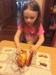 The interior of the cockroach was interesting for the girls to look at myself included. We usually focus on the outside parts of animals so this was a good introduction to the insides of things with diagrams. It’s a gross bug so they weren’t horrified by it. Lol.