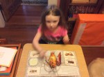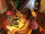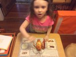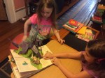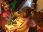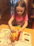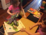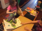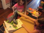 One of the other books explored was a dinosaur theme. We’ve touched up on dinosaurs but not to the extent that we’ve studied the types. We’ve discussed prehistoric creatures and the reference of dinosaurs to birds. We’ve talked about extinction & how some animals that aren’t prehistoric also become extinct & for different reasons which brings the idea home as to why they aren’t around anymore despite the different theories. I’ve taken out more dinosaur books to encourage questions and it’s working. When Maggie realized dinosaurs ate each other once apon a time after seeing an illustration- she understood the reasoning why other animals might eat each other today. She is beginning to understand that animals have different worlds than we do even though we live in one world together. That we all require certain things like food and water which is the common element between us.