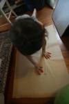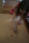 A favorite that the girls love to do is Mat Man which is a program built around Handwriting Without Tears. We use HWT for handwriting skills. We listen to a CD with the Map Man song on it which tells the girls which part of the body to draw first (of Map Man). While the girls are building these parts we discuss whether the wooden pieces that they are using to build him are “long lines” or “short lines”…..”small curves” or “big curves”. I use this same language when guiding the children to write their letters independently on their chalkboards or paper. After using the wooden pieces to build map man we draw him with crayons or other utensils. I like using oil crayons by crayola because they draw smoothly without paper bunching and it makes it more stress free for Lily without the movement of paper while she is writing. The photography below shows the girls building and drawing map man while listening to the map man song. You’ll notice that mat man is sad until he has all of his body parts. lol.