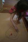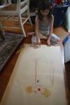 After the girls switched turns on who got to do what part they started their drawing of mat man.