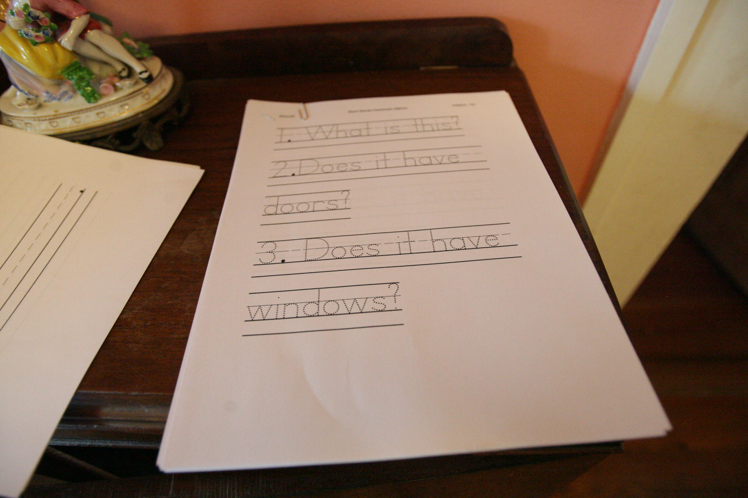 We continued on with our short stories #5 and worked on handwriting skills with the question side of the project. We are working on inadimate object stories right now teaching the value of the word “it” in simple stories. We also reviewed phonemes on the board including: _i_, cy, zh, ce, and s.
