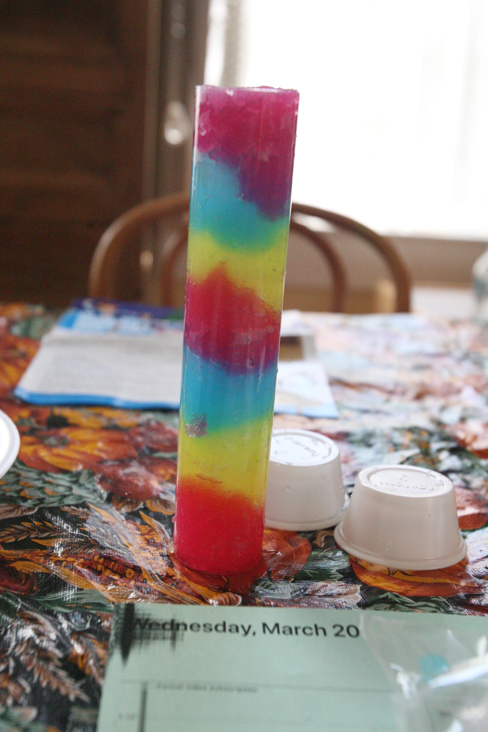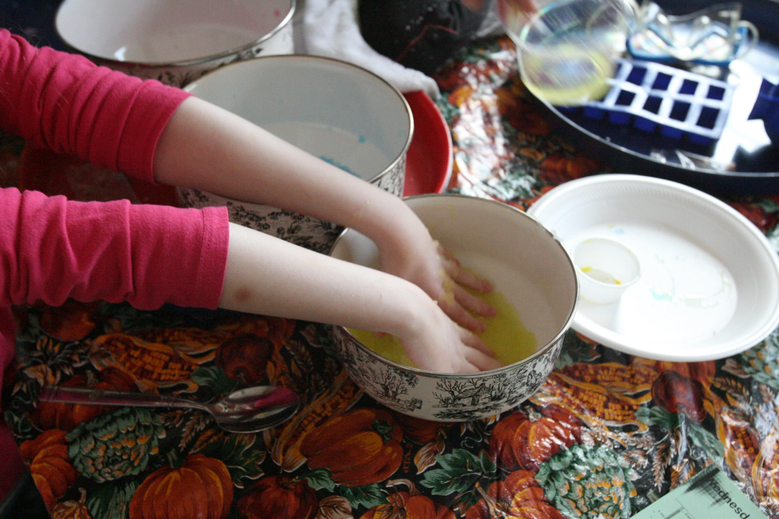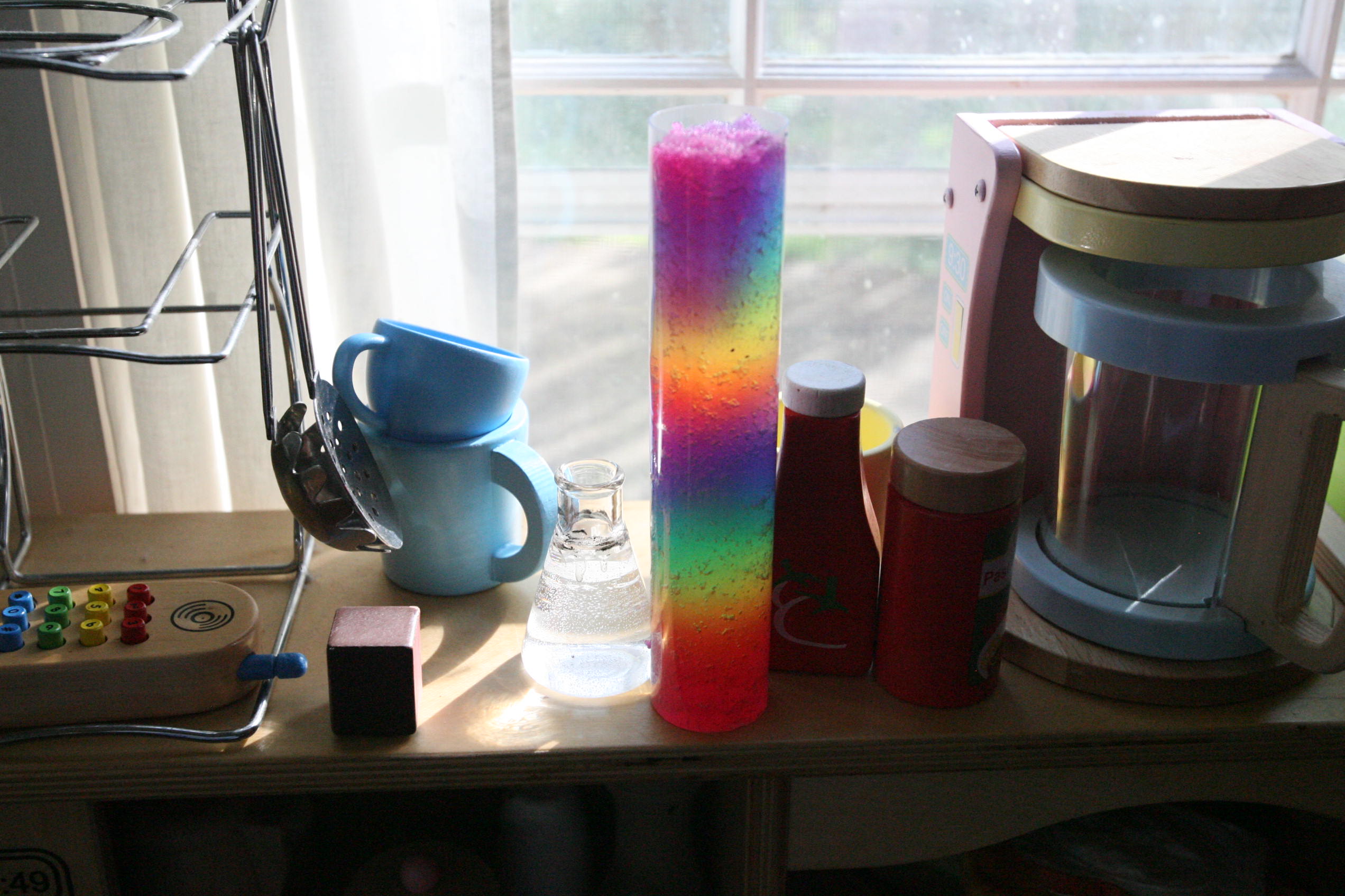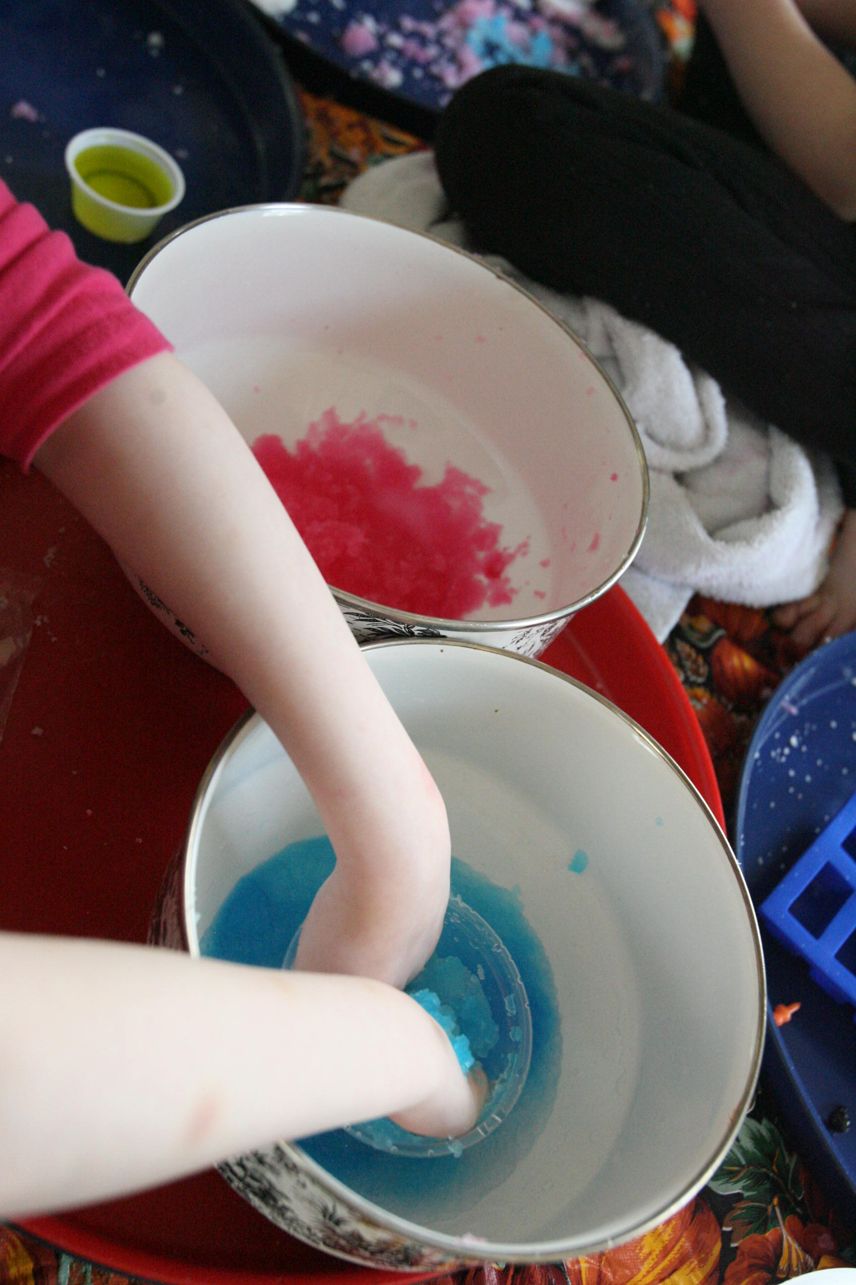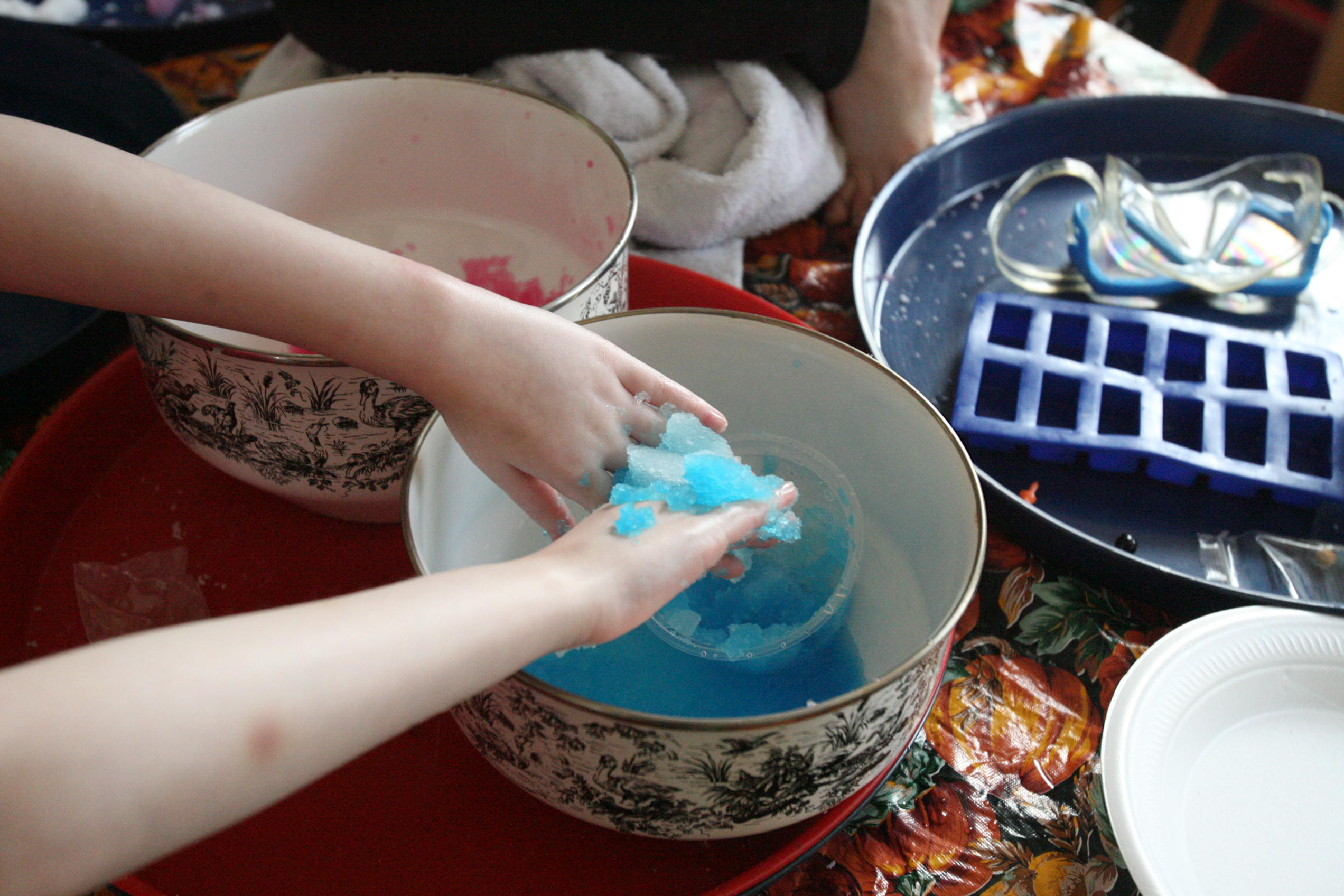 Dad sits in to help with the snow experiment above which the girls loved. We have been talking a lot about matter in science and how matter has different forms and can change different forms. So we did a few things in this experiment in that respect. We changed our dry matter powder into a wet substance that grew right before their eyes. We froze some of the product and made a mini snowman out of it. In another experiment the girls learned and explored more about osmosis by adding color to the snow and placing it into a tube to see what the result would be with time (as the colors bled into eachother to create a rainbow effect). We are learning more about this idea by placing dried moss on a plate and adding water and watching the moss soak up that water and turn green the following day. We are doing the same with some tree moss and I’m still looking for a bit of resurrection fern to show them the magic of that plant too.