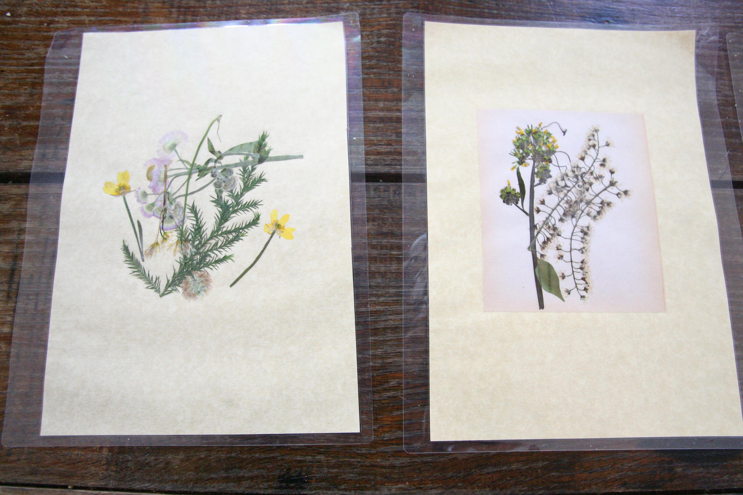 We have really enjoyed picking wildflowers as the warm weather has rolled in . So we pulled out the flower press and started taking wildflowers and pressing them. Unsure of what to do with them next we decide to try to laminate a few on parchment paper to keep as artwork.