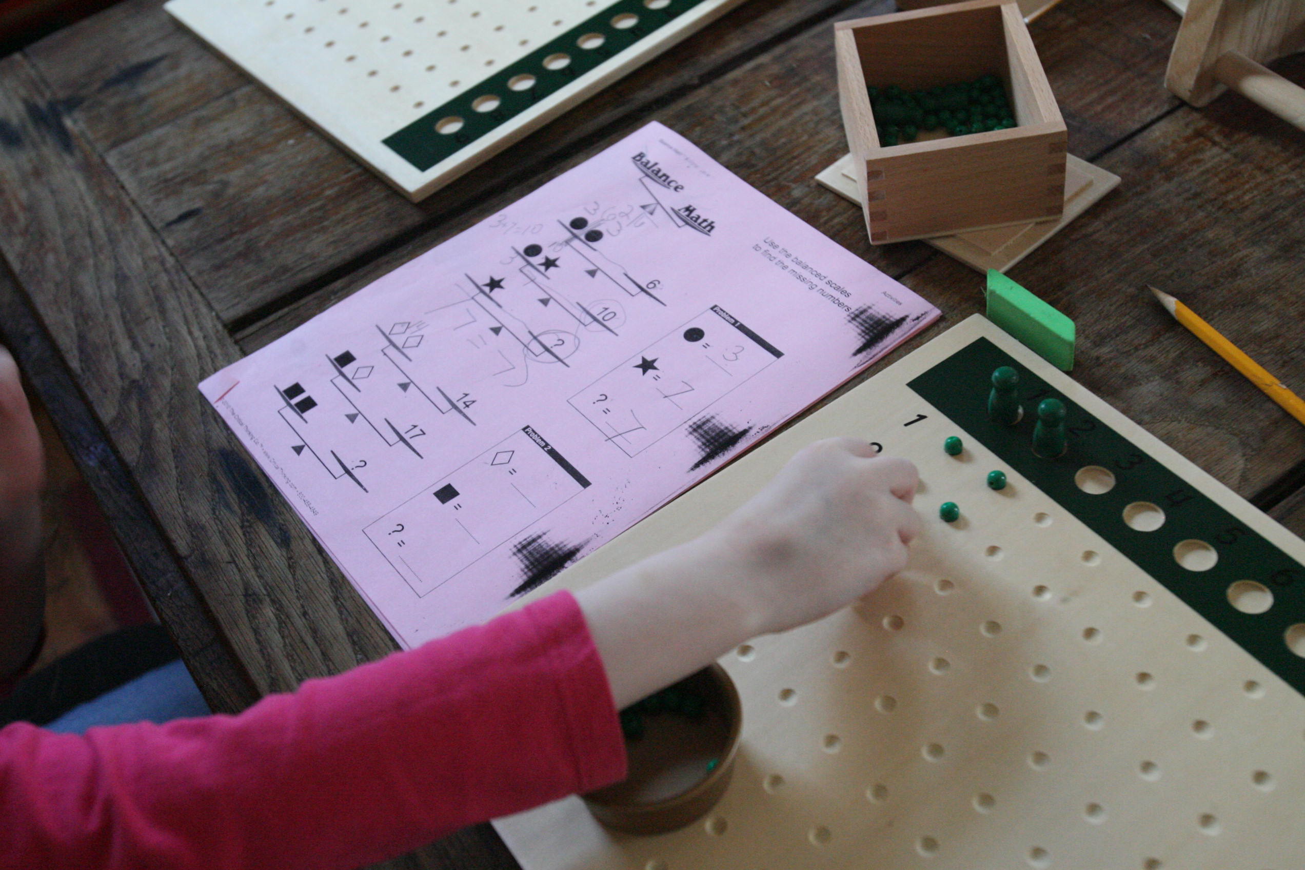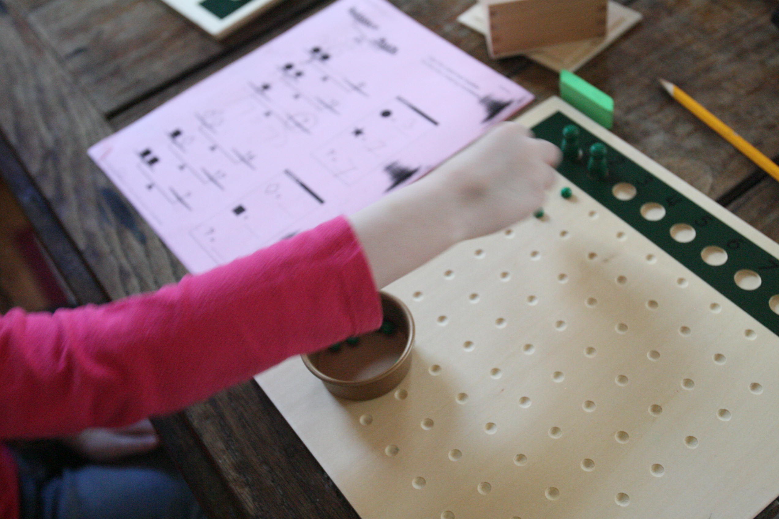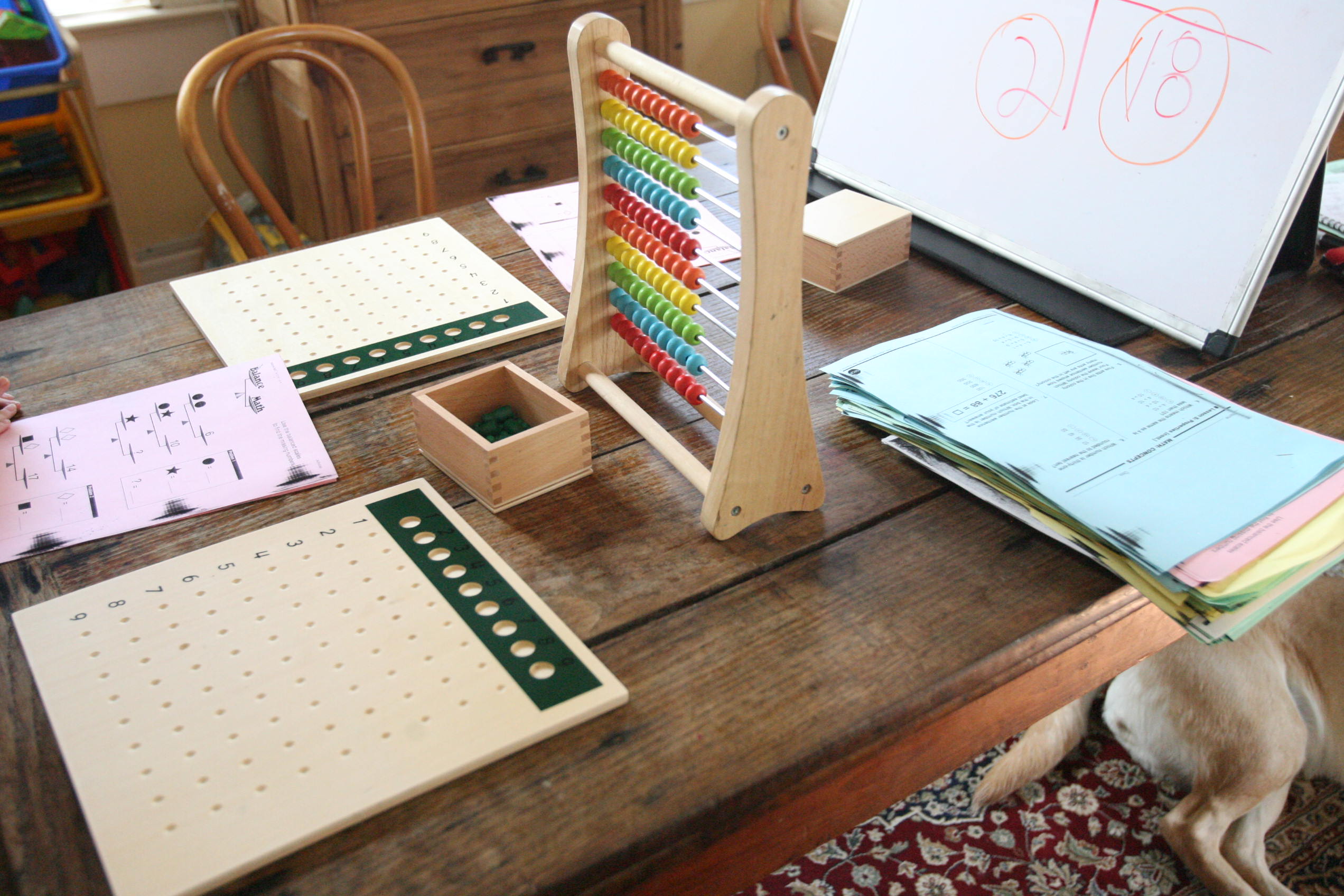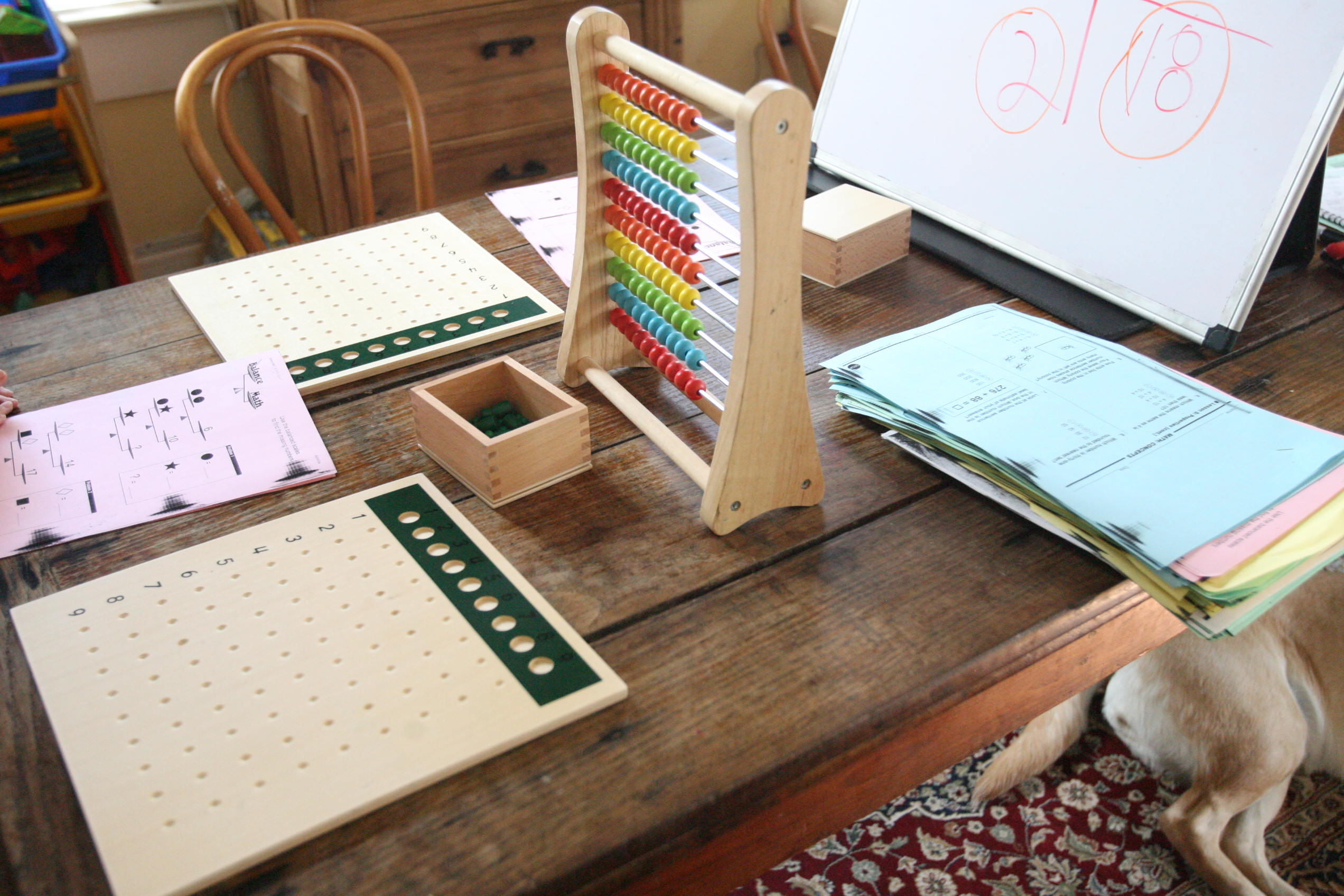 Above is a mix of Hooked on Phonics work, time sheets, Montessori language materials and Bob Books for reading.