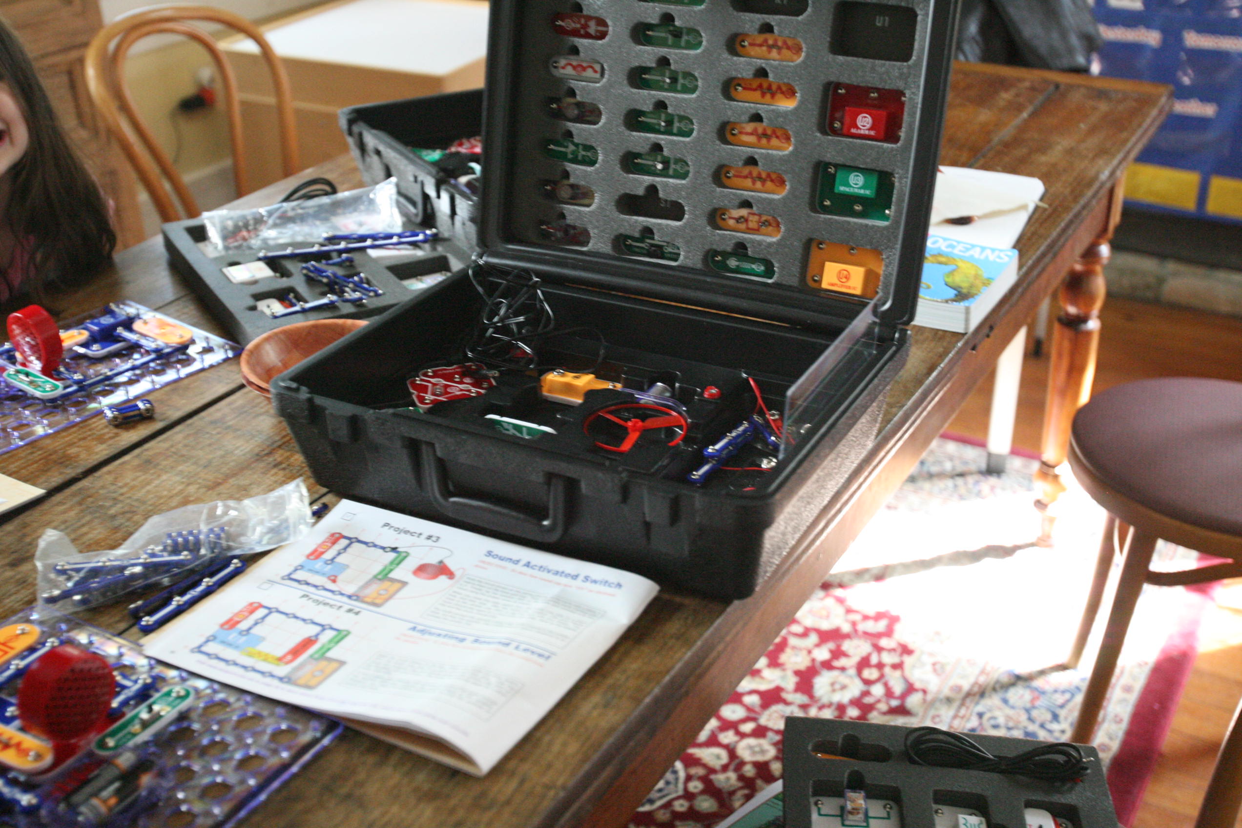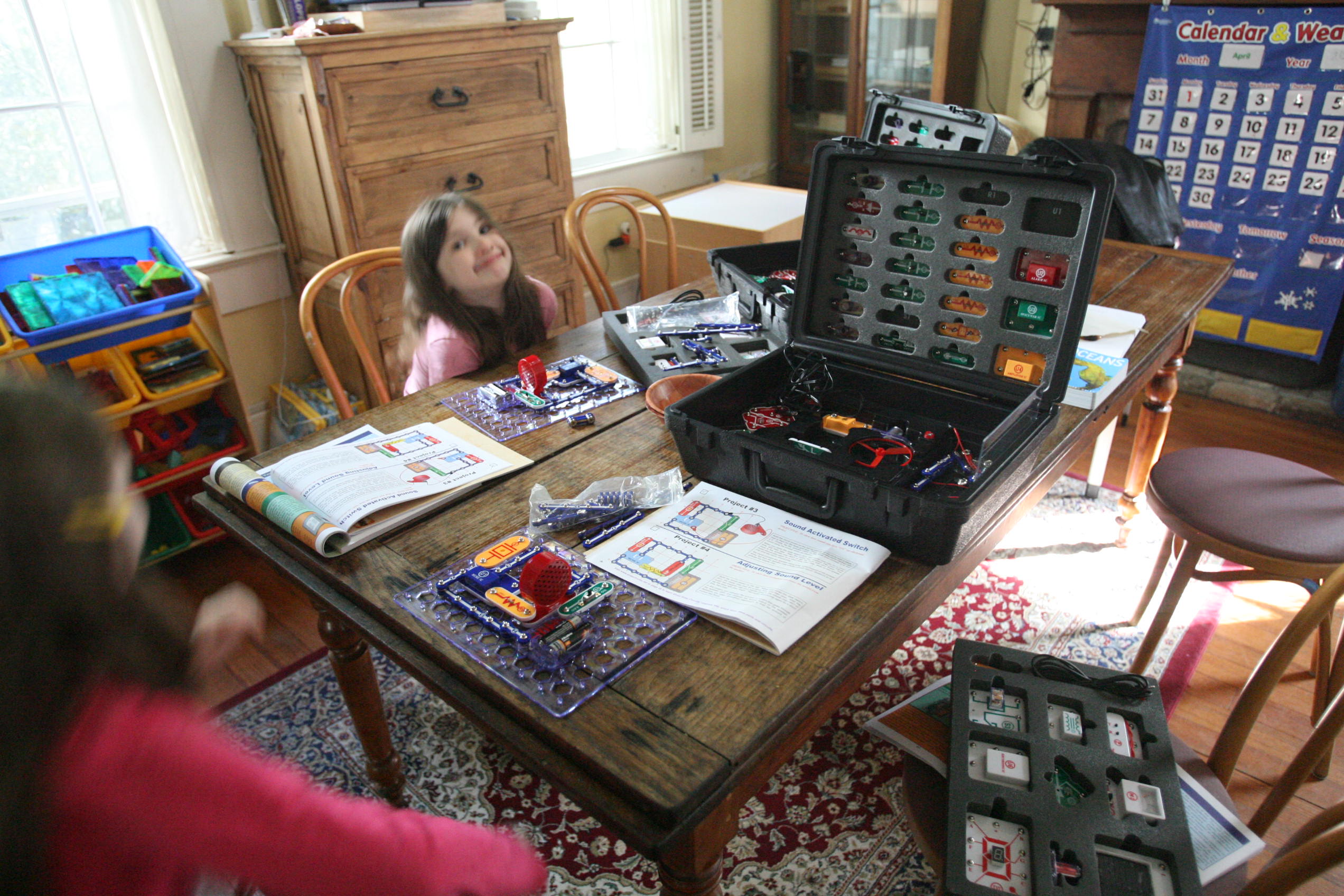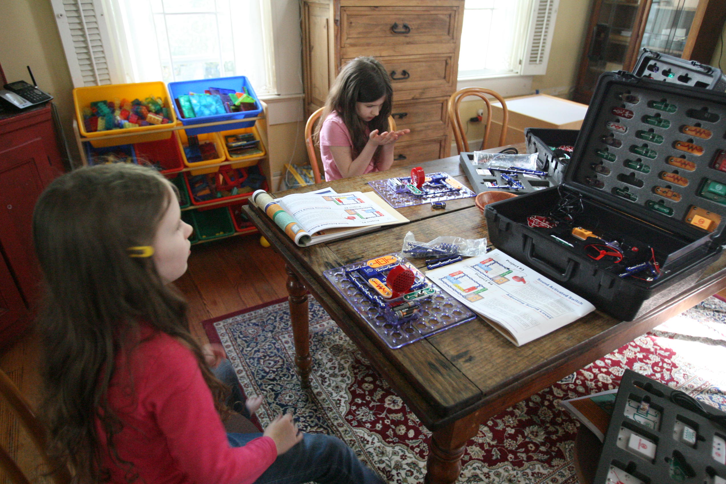 Girls works on a few of their Smart Circuit experiments above.