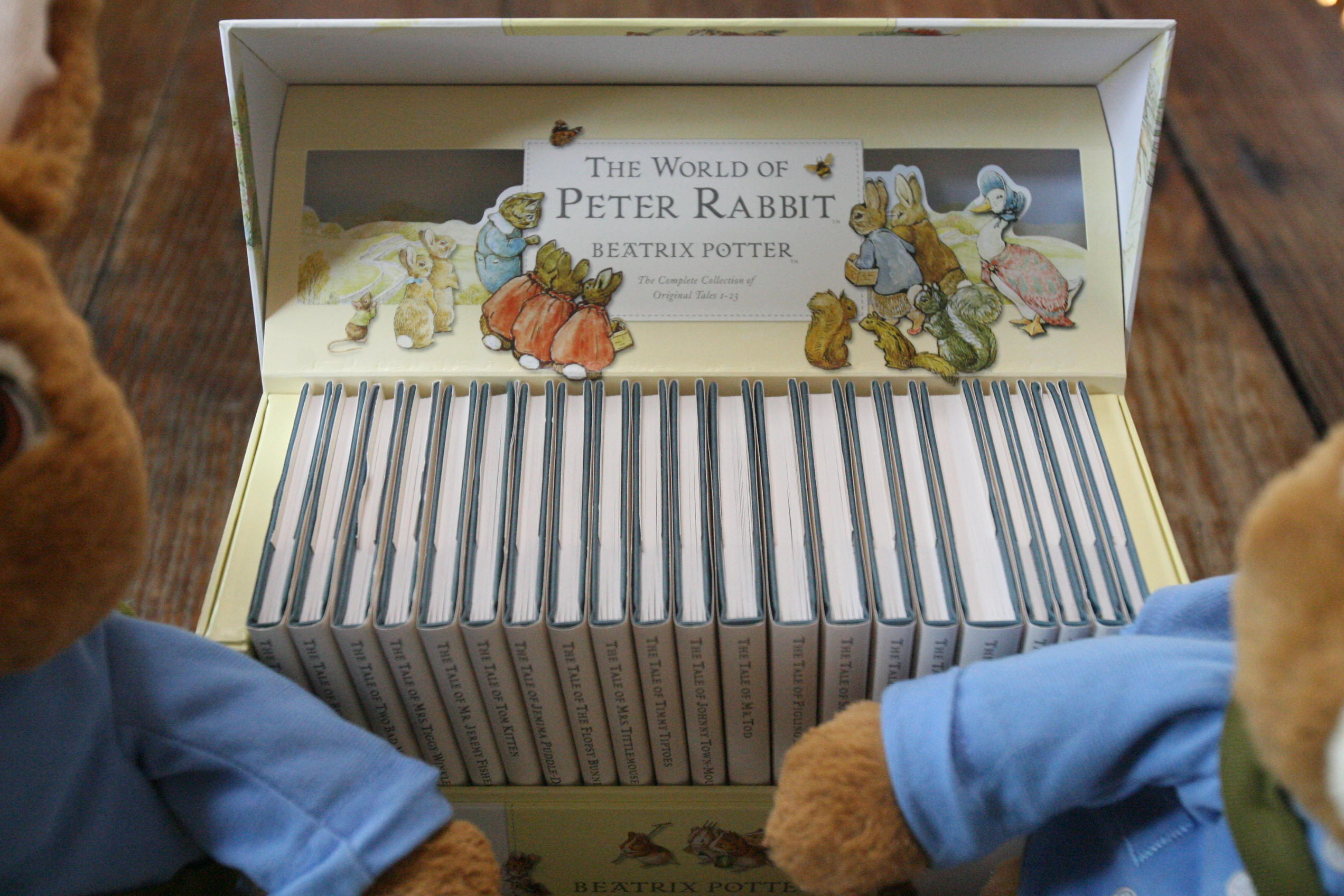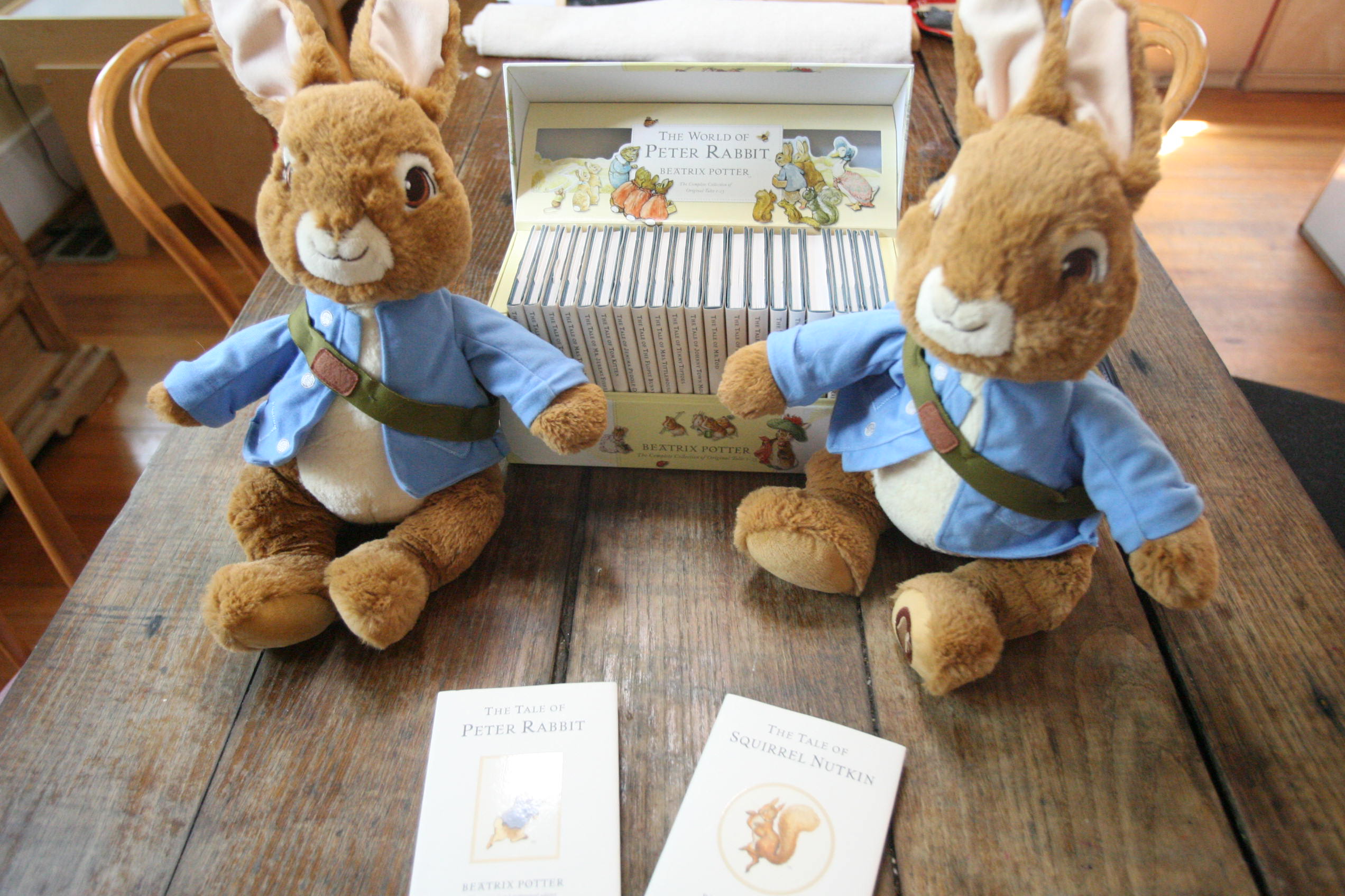Above are Peter Rabbit books, Preposition work at the board and addition and subtraction with the abacus.