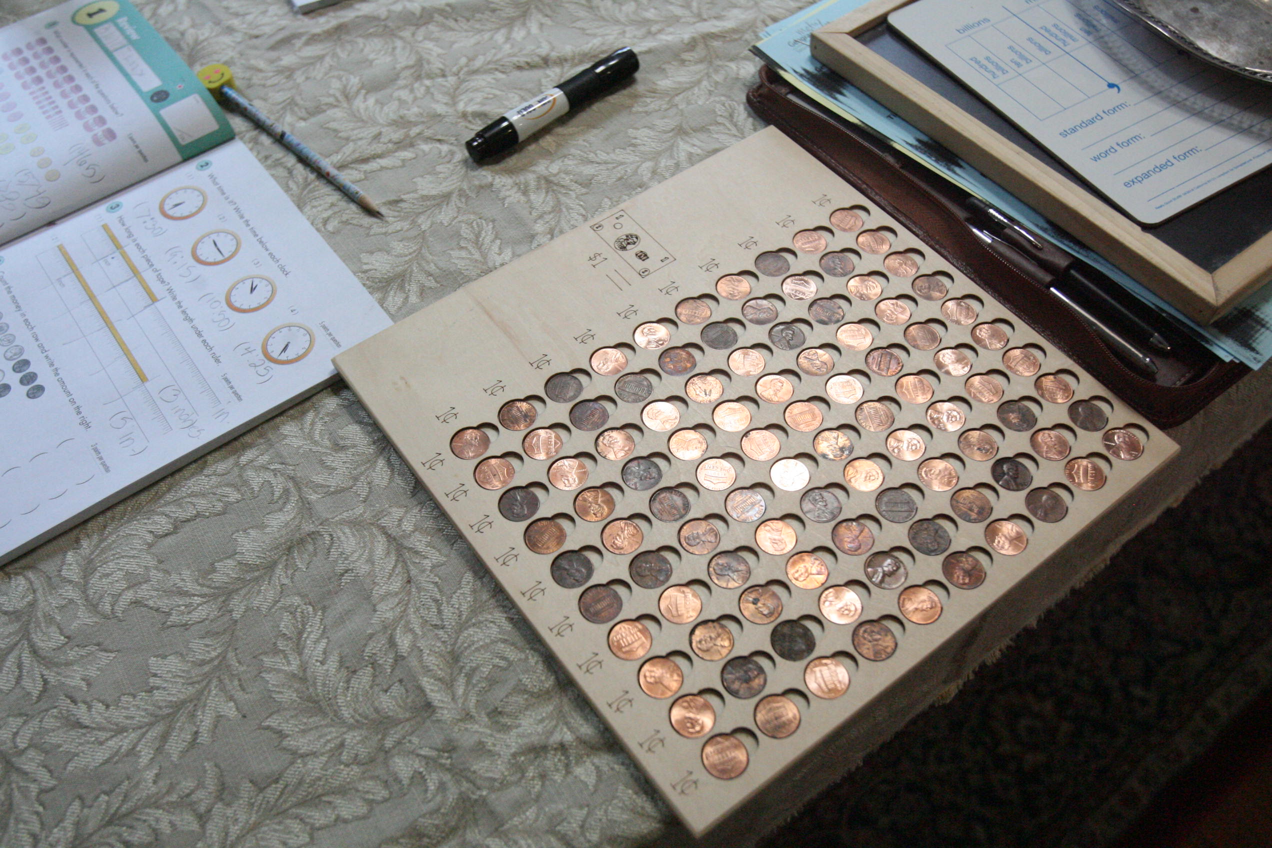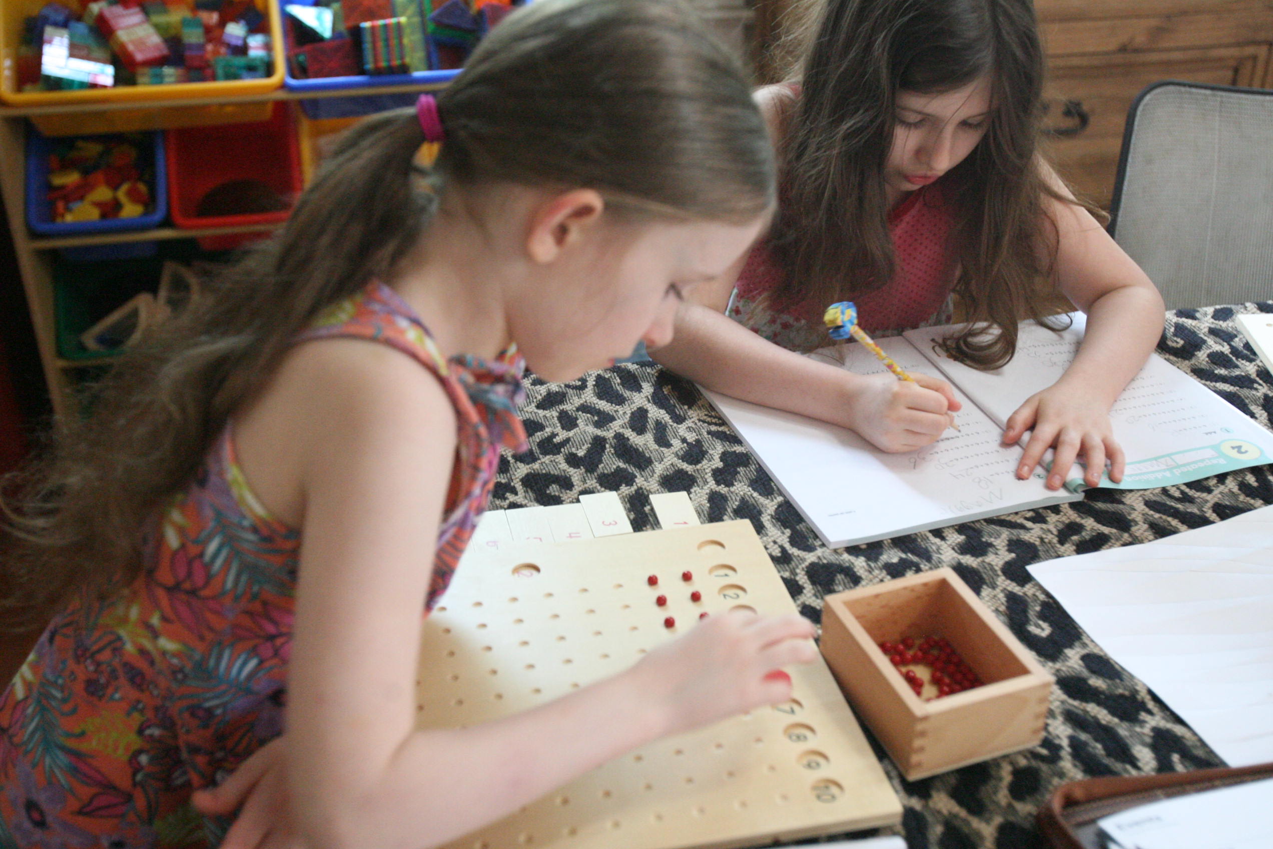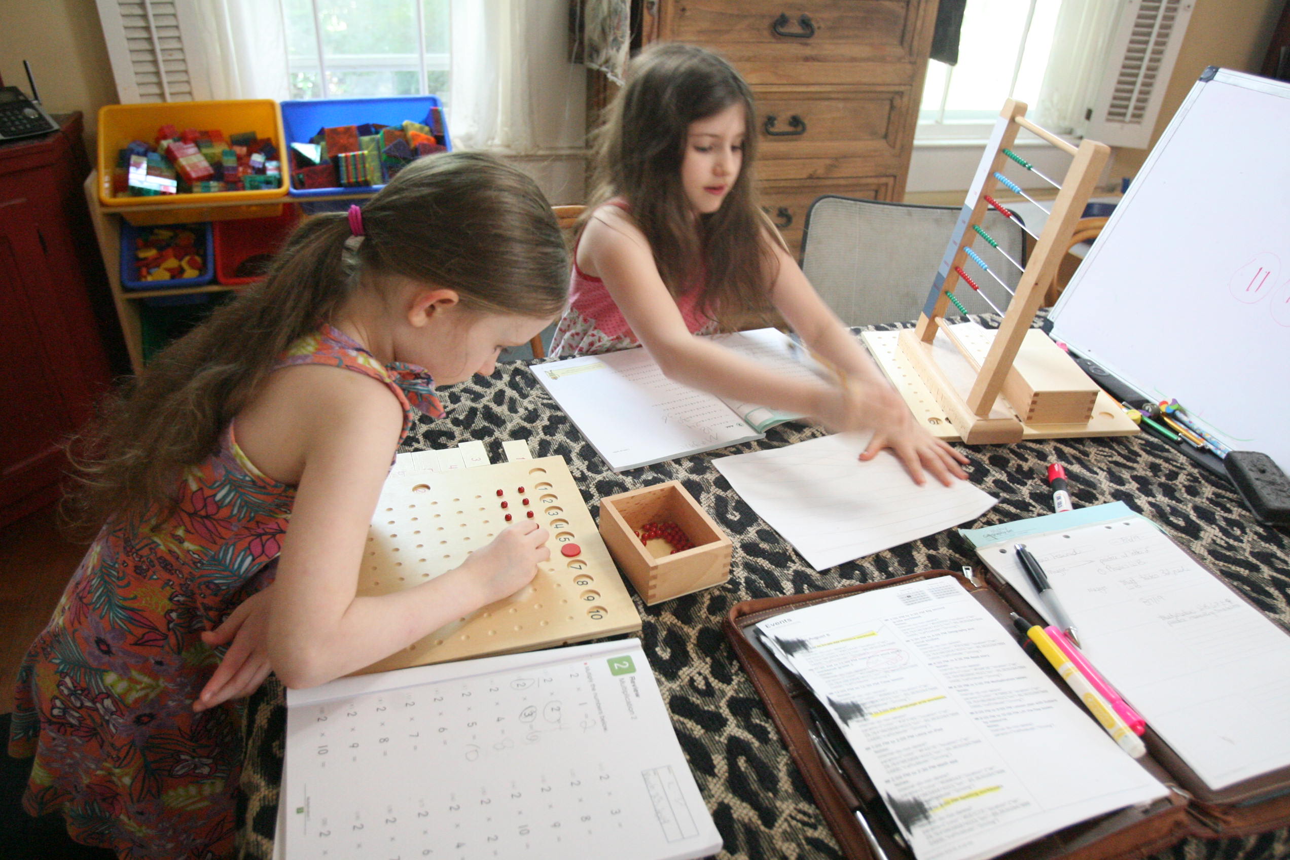 Above work with Multiplication and multiplication board as well as grammar books.