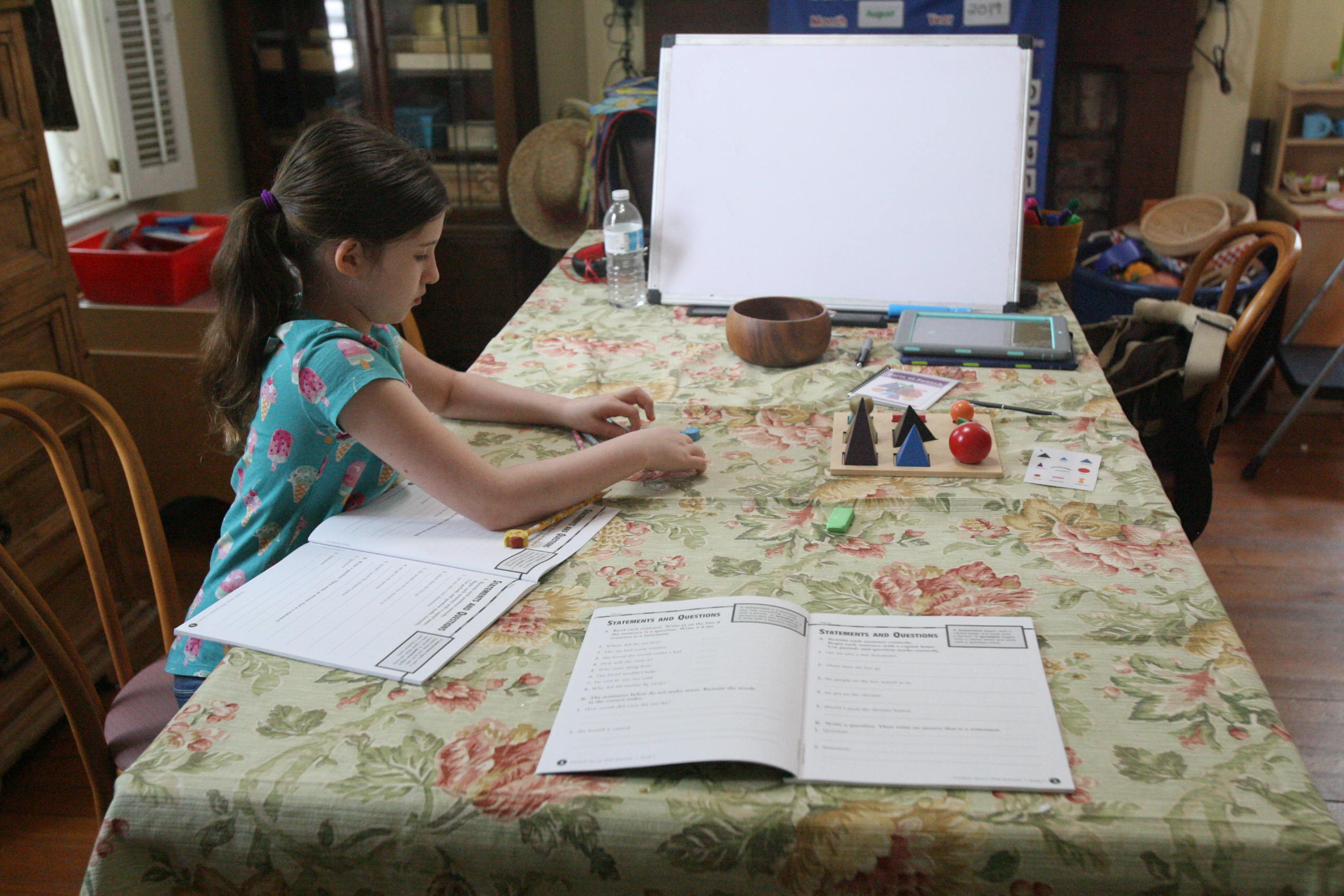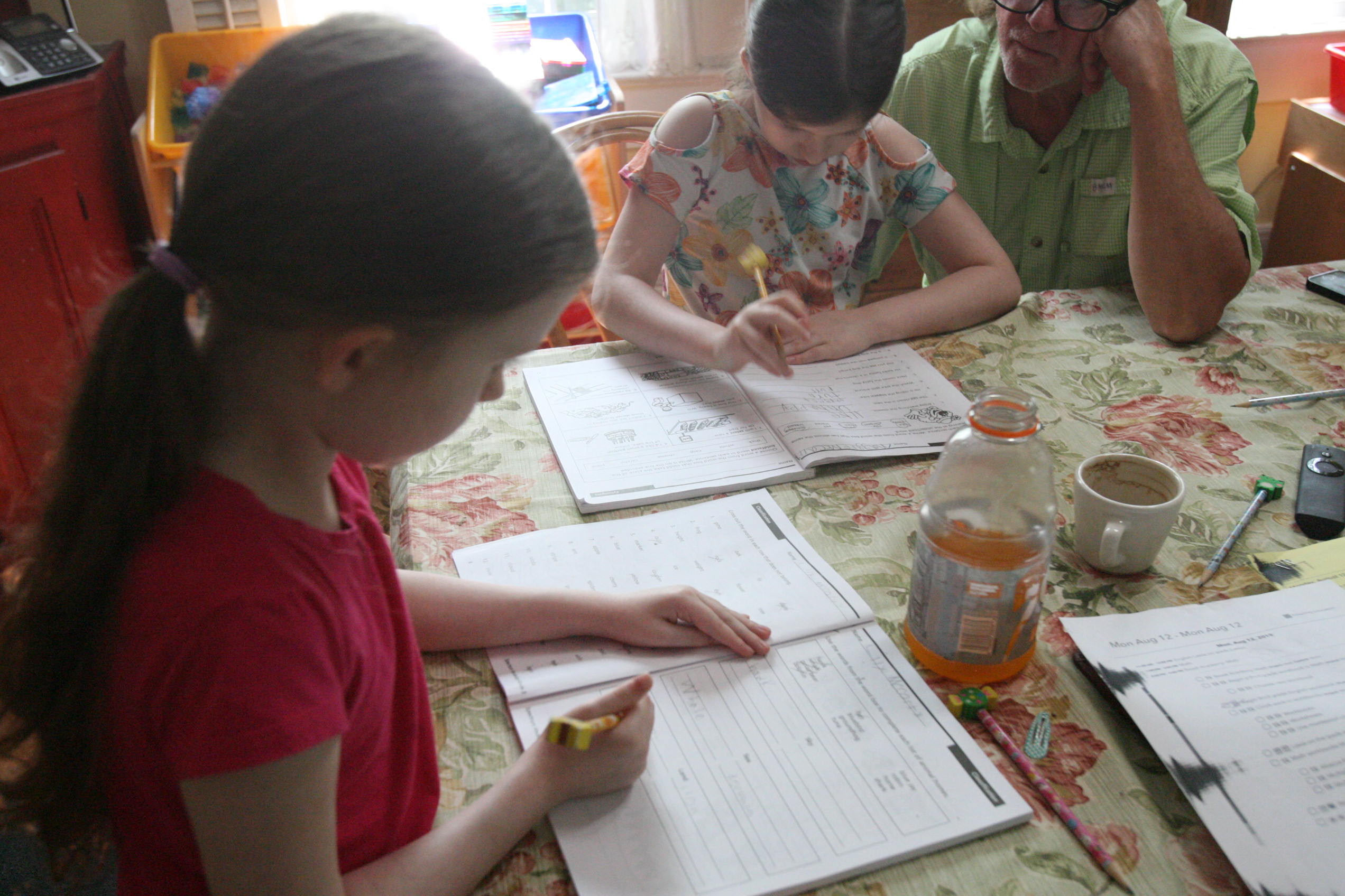 Above the girls work on handwriting and grammar and their Daddy even got to join them on one day while they were working!