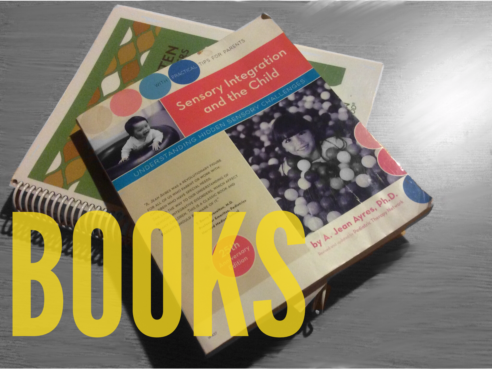 This is a mixture of books. Some are for me to understand certain things like sensory integration and others are workbooks to keep me up with things like common core curriculum. Again, this list is ever changing.