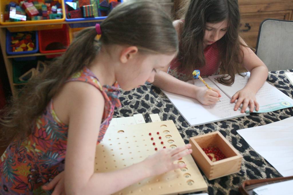 Above are a few last pics of some Dubard work at the board. The above shows the girls working on both the grammar boards and the grammar boxes. Since we have been working on sentences and short stories at the board and identifying nouns, pronouns, verbs and prepositions I pulled this material out as it…