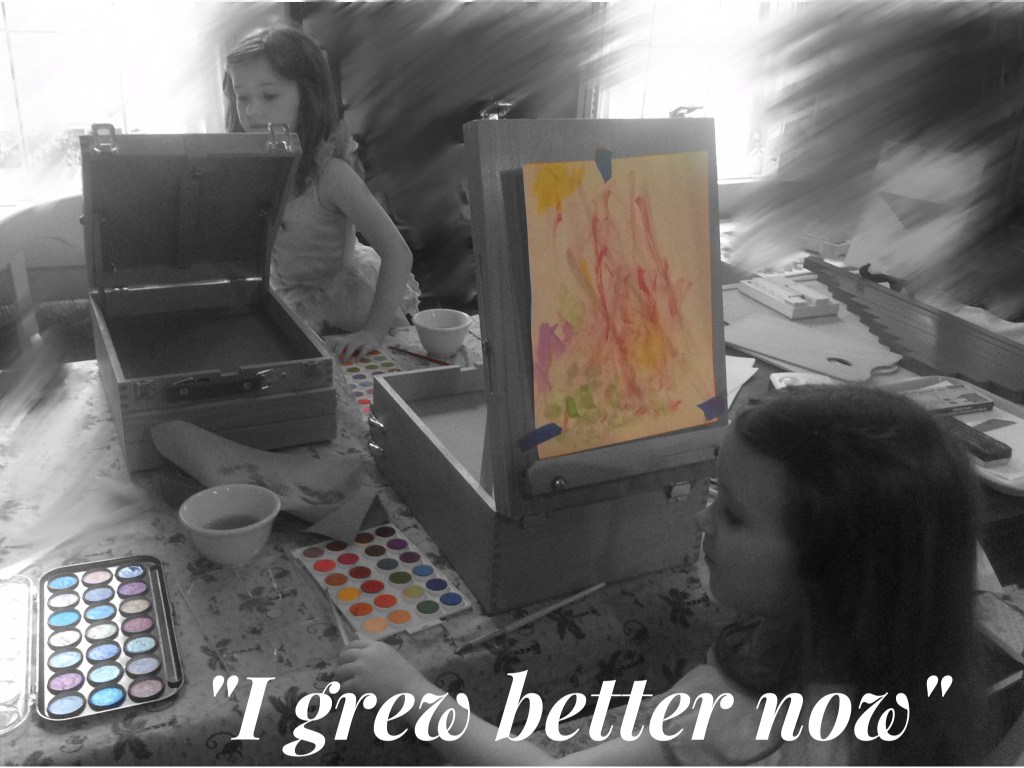 After watching her for a while I said to her out loud what I was thinking as she described every detail she could on each page. “I love hearing your little voice talk.” She said back to me, “I grew, better now.”